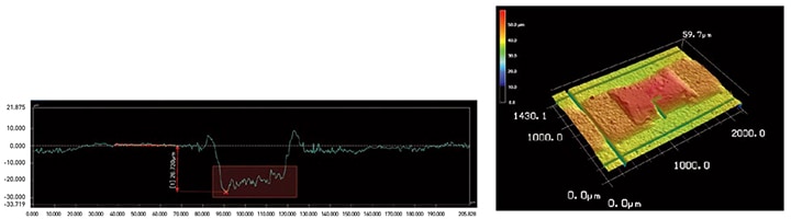 また、トリミング部に生じるクラックの幅、深さ測定もできます。