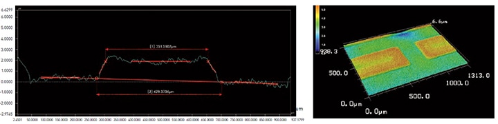 ウェットな状態のグリーンシート(誘電体)のパターン幅、厚みが測定できます。