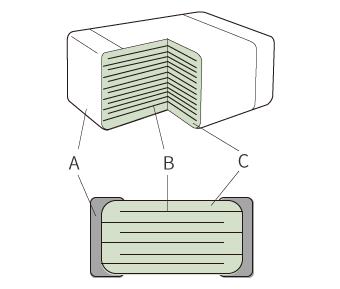 そこで、積層セラミックチップコンデンサは、セラミック誘電体と内部電極をサンドイッチ状に交互に多層積層し、小型化と大容量化を実現しています。