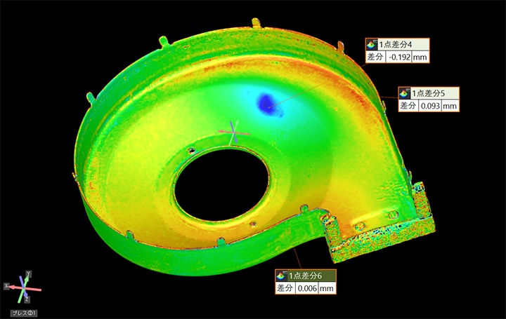 メリット3:3D-CADデータとの差分をカラーで見える化