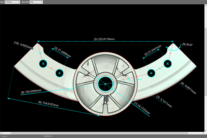 - 3D-CADデータと取得データの比較測定、3Dデータからの2次元測定が可能です。