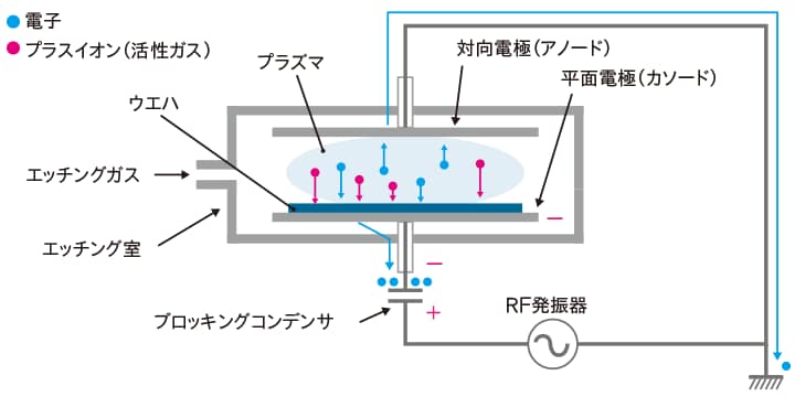 エッチング対象に対して指向性をもつイオンや高速中性粒子を衝突させてエッチングする方法です。