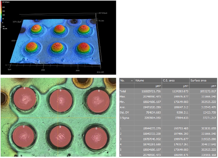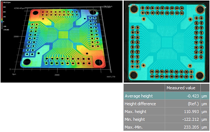 近年、スマートフォンやタブレット端末、ウエアラブルデバイスなど、小型化・低背化・高機能化を背景に、基板や部品の小型化・高密度化・多層化が進み、製品の検査解析へのニーズが⾼まっています。最新の「VK-Xシリーズ」は、繰り返し測定や同じサンプル内の複数箇所を登録し⾃動測定するティーチング⼀括解析に加え、テンプレートを作成してOK/NG判定も可能です。ここでは、PCボード/基板実装関連の技術情報と白色干渉計搭載 レーザ顕微鏡での検査事例を紹介します。