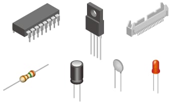 プリント基板のスルーホール(穴)にリード(電極)を差し込み、はんだ付けで接合する実装方法です。部品を基板上に配置するために基板が大きくなり、小型化が難しいという問題点があります。挿入実装用のパッケージから下向きにリードが出ている電子部品をDIP部品と呼びます。