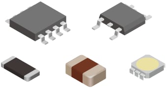 現在の基板実装の主流が表面実装です。スルーホール(穴)を使わず、基板表面にあるランド(パッド)に電子部品の電極をはんだ付けします。挿入実装のようにリード(電極)が貫通しないので、基板の両面を利用して多くの電子部品を配置することにより、小型化できることがメリットです。また、表面実装用のリードがない小型・高密度な電子部品をSMD部品(SMD : Surface Mount Device )と呼びます。