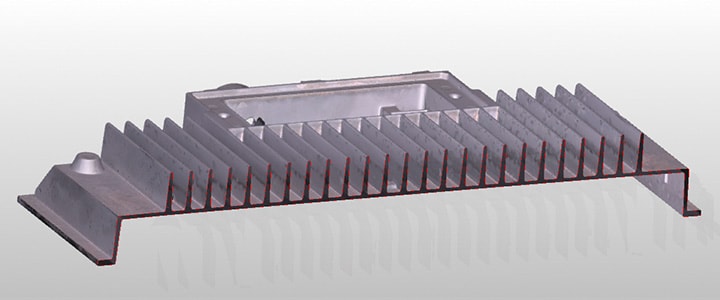 たとえば、刃先工具やヒートシンクのフィンのようにピッチが小さく奥まった対象物の場合、接触式測定機では底面までプローブなどの測定子が届かないため測定は困難です。