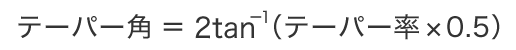 通常、図面ではテーパーはテーパー比で表します。しかし、旋盤による加工などでは、テーパー角の値が必要になる場合があります。