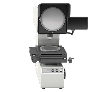 光学測定機の一種で、測定の原理は光学顕微鏡に似ています。対象物を台に乗せて、下から光を当てることで、対象物の輪郭がスクリーン上に投影されます。大型のものではスクリーンが直径1mを超えるものもあります。2次元投影では確認できない奥まったテーパー部分は、サンプルを切断して測定します。