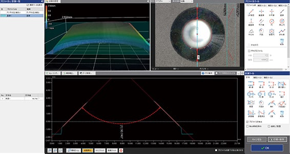 また、事前に測定項目を登録できる解析テンプレートを使用してワークの形状解析ができるので、これまで時間がかかっていたり、不可能だった測定も短時間で可能になります。