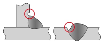 - 一般的に溶接電流や溶接速度が過剰に高いことなどが原因となります。