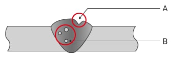 - 溶接条件(電流量や速度)が適切でないことが原因となり、発生します。
