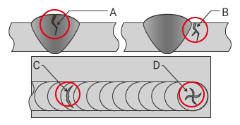 割れ(溶接ビードや母材の表面)