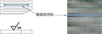 | 筋目方向 | 除去加工によって生じる顕著な筋の方向。 |