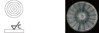 加工による筋目が記号を記入した面の中心に対してほぼ同心円上