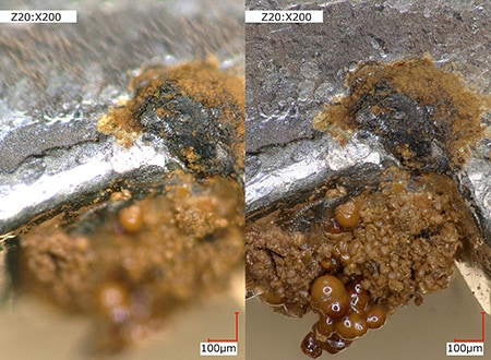 原因究明と再発防止には腐食部の分析・解析が重要で、腐食部の形態観察には顕微鏡が用いられます。しかし、従来の顕微鏡を使った観察では、さまざまな課題がありました。