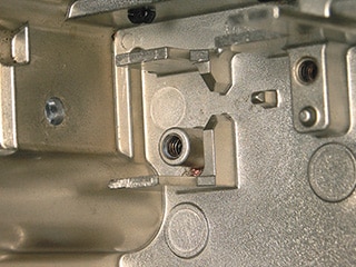 | かじり | ダイカスト取り出し時に、型に溶着したり、抜け勾配が不適切な場合に傷が発生 | 金型表面を十分に研磨し、適切な抜け勾配を設ける |