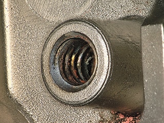 | 鋳巣(いす) | 溶融金属内の空気やガスの混入による穴(巻き込み巣・ブローホール)。溶融金属の供給不足によりできた空洞(引け巣) | 鋳造圧力の調整、ガス抜き穴の変更、離型剤の塗布量の調整、湯口の位置と大きさの変更 |