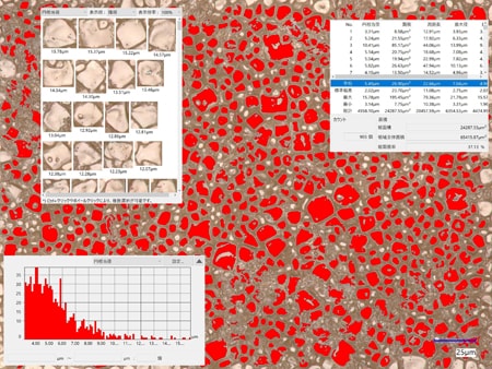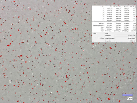 自動面積計測機能で粒度解析することで、解析が正確になり大幅な工数削減が実現します。