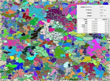 自動面積計測(結晶粒度解析)画像