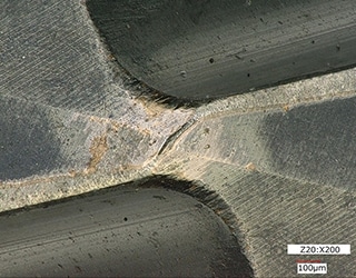 4Kデジタルマイクロスコープ「VHXシリーズ」の倍率は0~6000倍。通常の顕微鏡の倍率では観察できない微細なひびも、VHXシリーズなら見逃すことはありません。この大倍率に加え4Kの高精細撮影が可能です。この撮影機能は、これまで判別できなかった、摩耗と異物付着の違いなどの判別を可能にします。