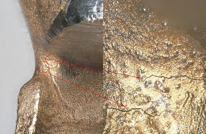 切削は、加工速度と刃先の長寿命化を両立できる、最適な切削条件で行わなければなりません。顕微鏡で工具の摩耗状態を観察・測定し、最適な切削条件を導き出すことは、工具の寿命を延ばし歩留まり率と生産効率を向上させるための有効な手段の1つといえます。