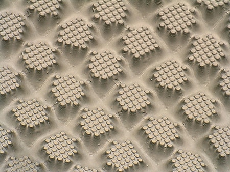 写真などグラデーションのある画像の濃淡は、濃い部分には濃いインクをつけるなどの塗り分けはできないので、網点(あみてん)という細かい点で表現します。