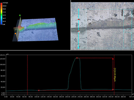 4Kデジタルマイクロスコープ「VHXシリーズ」は、高精細画像による観察だけでなく、サブミクロンオーダーでの高精度な3D形状や不良箇所のプロファイルの測定が可能です。