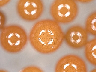 4Kデジタルマイクロスコープ「VHXシリーズ」は、「ライブ深度合成」により凹凸のある表面の全体にピントが合った画像を取得することができます。また、「リング除去」機能により、リング状の反射光を除去することができるため、樹脂材料の粒子や気泡を鮮明に観察することができます。