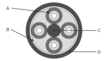 ケーブルの中心にはテンションメンバがあり、施設時の張力を緩和します。