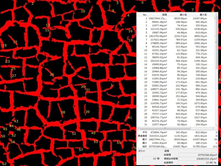 自動面積計測機能で、ゴムの粒子を定量化できます。
