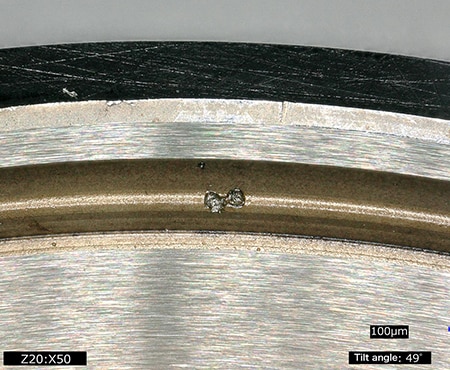 4Kデジタルマイクロスコープ「VHXシリーズ」であれば、「ハレーション除去」・「リング除去」機能で反射光をカット。摩擦で光沢を増した摺動面のハレーションを抑えてクリアに撮影できます。微細なヘアライン傷や摩擦痕と付着物の違いも判別できるので、摩擦・摩耗の状態をより正確に把握することができます。