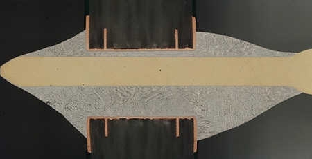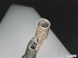4Kデジタルマイクロスコープ「VHXシリーズ」は、「ハレーション除去」「リング除去」機能を搭載。反射率の高い多少物であっても、めっき処理されたコネクタピンの表面状態や、圧着端子の芯線かしめの状態を鮮明に観察することができます。