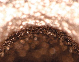 しかし、めっき皮膜は薄く光沢があるうえ、多くの場合そこに生じる不良は、微小かつ立体的です。従来の顕微鏡で撮影した写真(