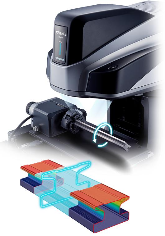 サンプルを回転させながら測定をおこなうことで、死角をなくしてありのままの断面形状を再現することができます。今までは切断しなければ正確に測ることができなかった部分の肉厚や奥まった寸法が簡単に測れます。