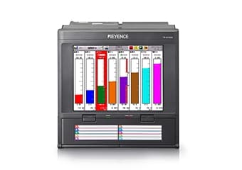 キーエンスのタッチ型ぺーパレスレコーダ 「TR-Wシリーズ」、プリンタ搭載タッチ型パネルレコーダ「TR-Hシリーズ」であれば、温度センサからの情報をデジタルデータとして収集・管理・解析でき、正確な温度管理が可能です。ペーパーレス化により、チャート紙やインク切れの不安もなくなり、ランニングコスト削減にもつながります。上限値や下限値を設定することで異常時のアラーム判定もでき、プリンタ搭載モデルであれば自動でチャート紙に印字することも可能です。