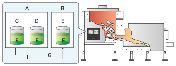 工場で使用した水は、廃水処理設備で浮遊物・沈殿物を取り除き、物理化学処理や生物処理で有害物質を取り除き、最終的にpH調整を行う必要があります。このpH値の記録にもパネルレコーダが用いられています。