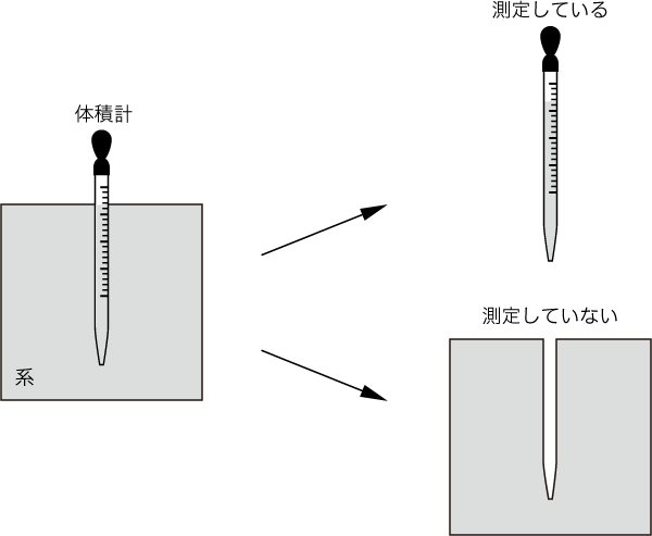 示量性変数(extensive variable)とは、「熱平衡関係ならば系を分割すると、それに比例して少なくなる状態量」と定義されています。例えば、100 kgを2つに分割すれば50 kgと50 kgに、100 m3を分割すれは50 m3と50 m3になるようなものが示量変数です。流量は、パイプ内の一部の流速成分を計測するのではなく、パイプ断面全体の流速成分を測定して、体積や質量と積分操作することで求められるので示量性変数となります。