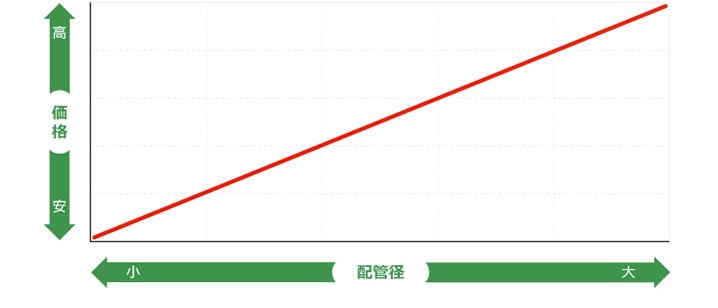 一般的に測定する配管の口径(配管サイズ)が大きくなるほど、流量計の価格が上がります。また、配管径が大きくなるほど、流量計の取り付け工事費用も高くなります。