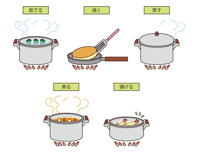 食品で最も一般的な加熱処理が「茹でる」「焼く」「蒸す」などの調理・加工です。サラダや刺身のような新鮮な食材を生で食べるケースを除けば、食品の多くは熱処理を経て私たちの食卓に並びます。