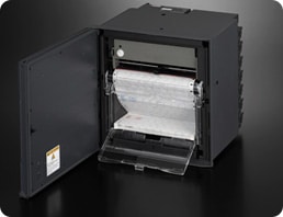 キーエンスのプリンタ搭載タッチ型パネルレコーダ「TR-Hシリーズ」は、デジタルデータとチャート紙の両方に対応しており、2重にバックアップできるので紙詰まり・紙切れ・インク切れによる記録漏れのリスクが低減できます。もし紙切れになってしまっても、追いかけ打点機能を使えば後からチャート紙に記録することも可能。記録漏れによって品質が保証できずに起こるロットアウト、再熱処理による手間とコストを未然に防ぐことができます。
