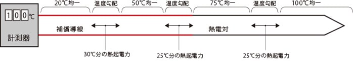 温度勾配がある場合、補償導線の代わりに銅導線等を使用すると正確な計測ができません。