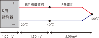 全体の熱起電力は-6.00mVとなり、計測器には間違った温度が表示されてしまいます。