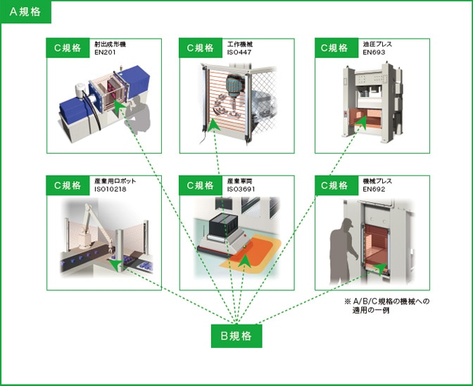 B規格グループ安全規格。広範囲の機械類にわたって適用できる安全性に関する規格。