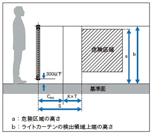 d=ライトカーテンの最小検出物体値注:S≧500mmの場合、K=1,600で再計算し、その計算結果がS≦500mmとなった場合、S=500mm