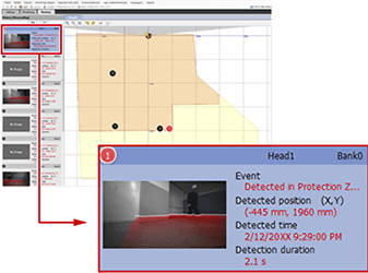 警告領域検知・アラームなど、いつなにが起こったかを最大500件まで保存できます。また、カメラタイプであれば、検知した瞬間の写真や映像の保存ができるようになり、「何を検知したのか」が具体的にわかるため、短時間で要因を分析できます。