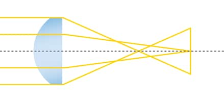 球面や平面ではない曲面からできているレンズのことです。最大の特長は球面レンズで発生する収差が小さいことです(=効率よく受光できる)。取り込む光の量を多くするためにレンズの口径を大きくしても、収差が小さくなります。