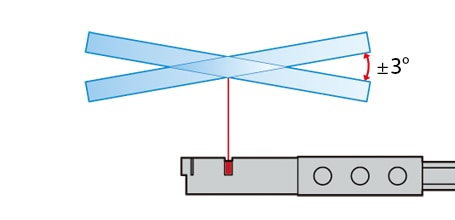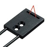 投光・受光部に対して、筐体ケースの幅を狭くすることで、視界を限定的にし、一定方向からの位置決め精度を向上。