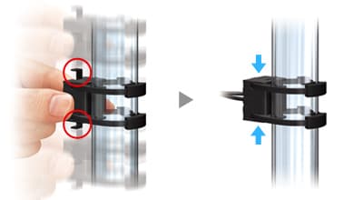 2. ロックを上下に引っ張ると、インシュロックが少し緩んで、位置調整が可能