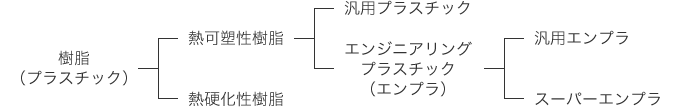 一般的に変形温度が低いため加工しやすく大量利用される「汎用プラスチック」と、耐熱性や機械的強度にすぐれ、力がかかる用途に対応した「エンジニアリングプラスチック(エンプラ)」です。