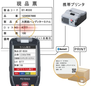 解決:ハンディターミナルのOCR機能で、文字をそのまま読み取り、その場でバーコードラベル発行